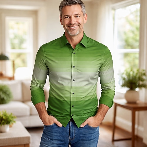 St. Patrick 2026 Retro Vintage 1970er Hemd Aloha-Hemd langarm Hippie Kostüm Herren Maskerade 4. Juli Party Festival Erwachsene Hemd