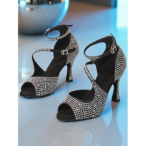 Scarpe da ballo latino da donna con lacci e strass in rete – sandali da ballo con tacco alto e glitter per salsa, feste e competizioni