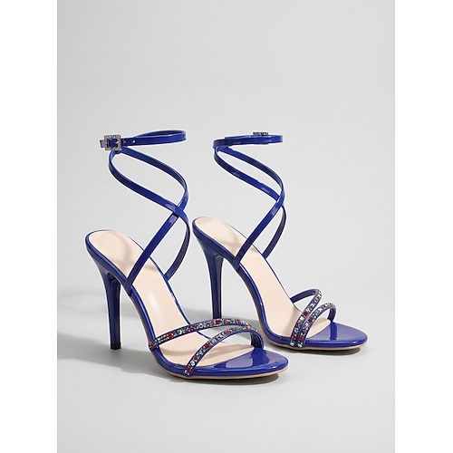 Sandali da donna blu con tacco alto e strass, eleganti scarpe da festa con tacco a spillo per la vita notturna e le serate in discoteca. eventi serali