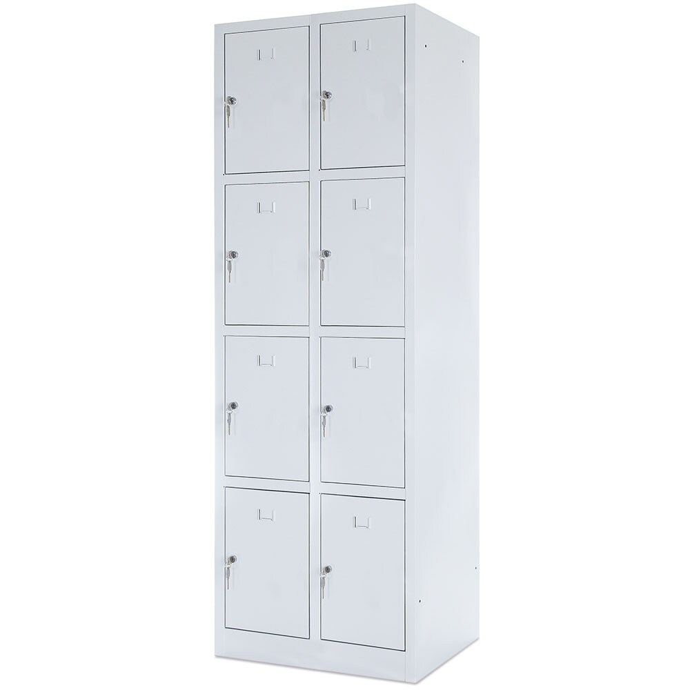 Stahl-Fächerschrank mit Sockel, 2x 4 Fächer, BxTxH 600x490x1800 mm, lichtgrau