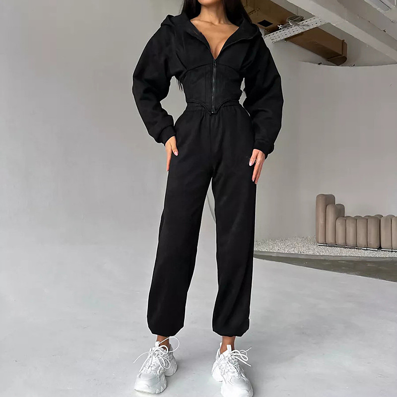 Women's Tracksuit Sweatpants Pullover Sweatshirt Drawstring Zipper Pocket Solid Colored Clothing Suit Fall Black Sky Blue Gym Workout Sports Windproof Long Sleeve Sport Activewear Micro-elastic