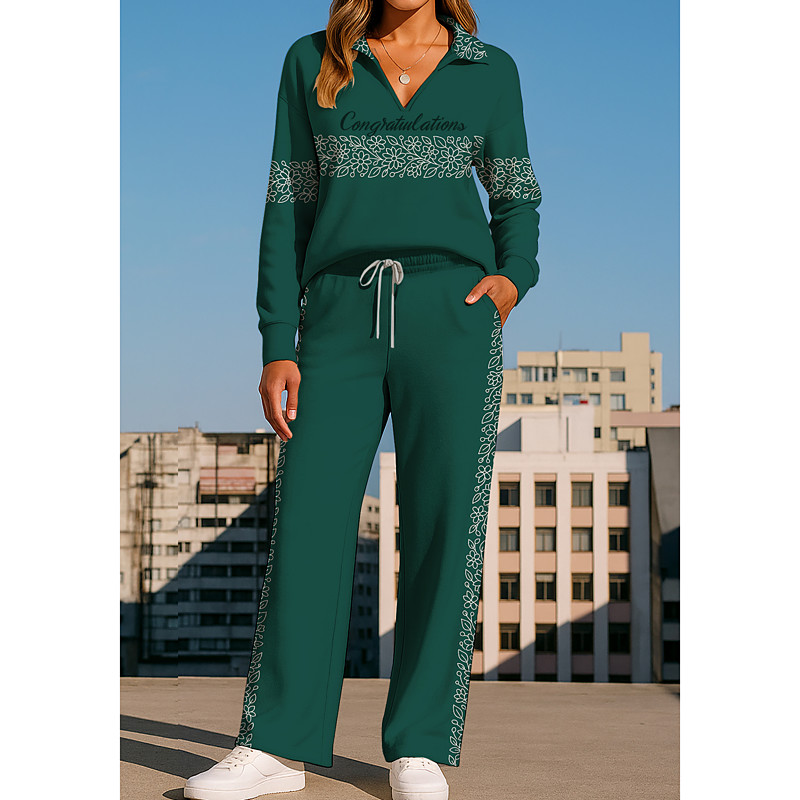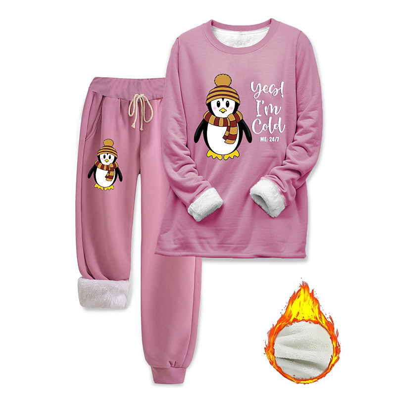 Women's Elegant Warm Fashion Two Piece Sets Tracksuit Pants Sets Long Sleeve Bishop Sleeve Crew Neck Graphic Animal Letter Print Outdoor Vacation Daily Black Pink Dark Pink Spring Regular Fit