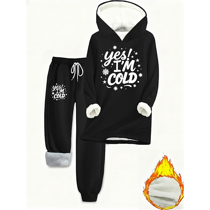 Women's Daily Stylish Two Piece Sets Tracksuit Pants Sets Long Sleeve Hooded Graphic Letter Drawstring Print Casual Daily Blue Black Pink Fall Loose Fit