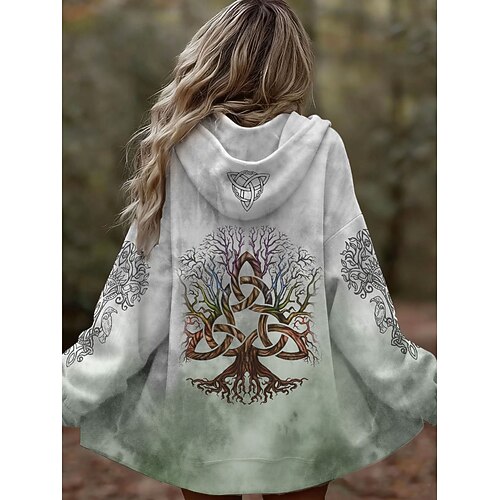 Per donna Felpe con cappuccio Grafico Tribale Moda Casual Manica Lunga Con Cappuccio Top Regolari Streetwear Abbigliamento Quotidiano Cerniera Tasca Stampato Bianco Vino Verde Grigio Primavera Autunno