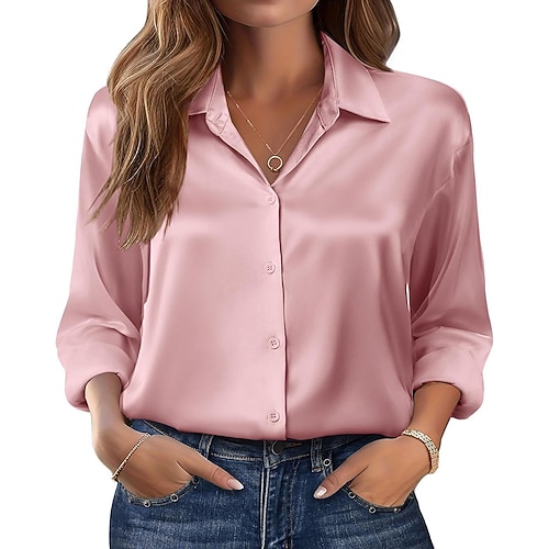Per donna Camicia Blusa Semplice Elegante Manica Lunga Colletto a Camicia Top Regolari Quotidiano Lavoro Ferie Bottoni Blu Nero Bianco Rosa Vino Primavera Autunno