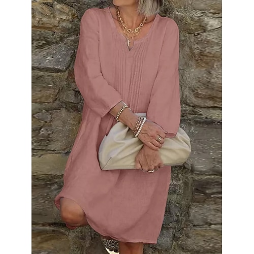 Per donna Mini Abito Abito a Tubino Casual Quotidiano Vestibilità comoda Semplice Manica 3/4 Scollo a V Nero Bianco Rosa Vino Estate Primavera Autunno