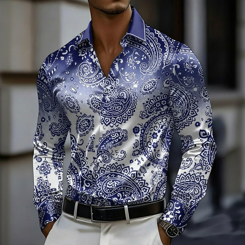 Men's Paisley Floral Print Gradient Color Shirt Satin Shirt Dress Shirt Long Sleeve Vintage Retro Vacation Dailywear Summer Spring Fall Turndown 3D Print Button Up Shirts Blue Red Purple Green