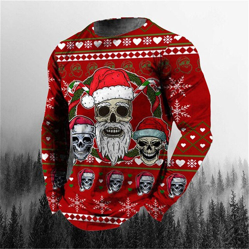 Men's Skull Graphic Prints T Shirt Long Sleeve Shirt Crew Neck Christmas Daily 3D Print Green / Red Black Red Print Clothing Apparel Streetwear Designer Basic Casual
