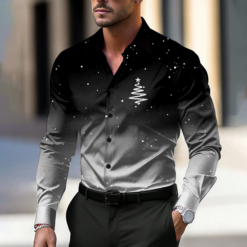 Christmas Men's Tree Shirt Dress Shirt Button Up Shirt Long Sleeve Casual Party Evening Wear Daily Fall Winter Spring Summer Shirt Collar Button Up 3D Print Light Blue Violet Red Blue Green
