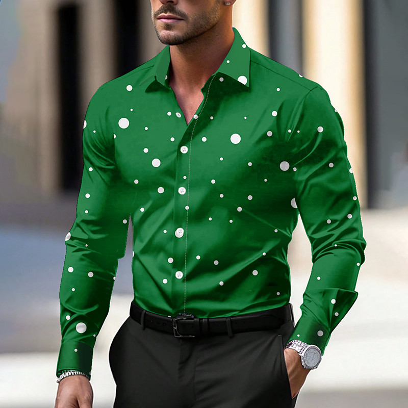 Christmas Men's Round Dots Dress Shirt Button Up Shirt Long Sleeve Casual Party Evening Wear Daily Festival Fall Winter Spring Summer Shirt Collar Button Up 3D Print Red Blue Purple Green
