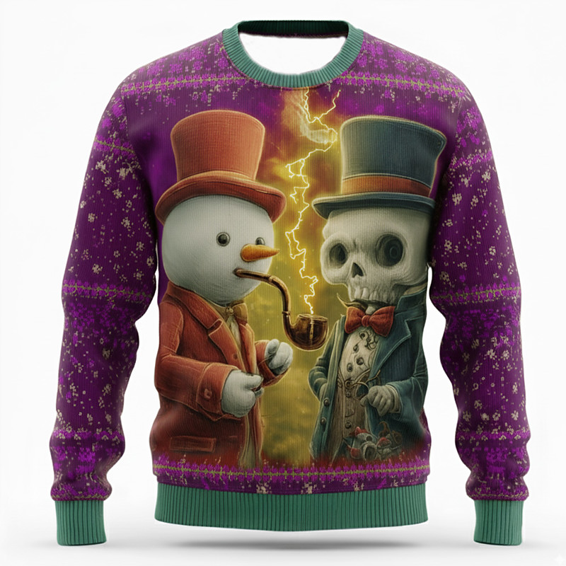 Ugly Christmas Sweater Men's Cartoon Snowman Cool Skulls Pullover Sweater Jumper Knitwear Crewneck Casual Dark Vacation Daily Festival 3D Print Keep Warm Long Sleeve Fall Winter Red Purple Green
