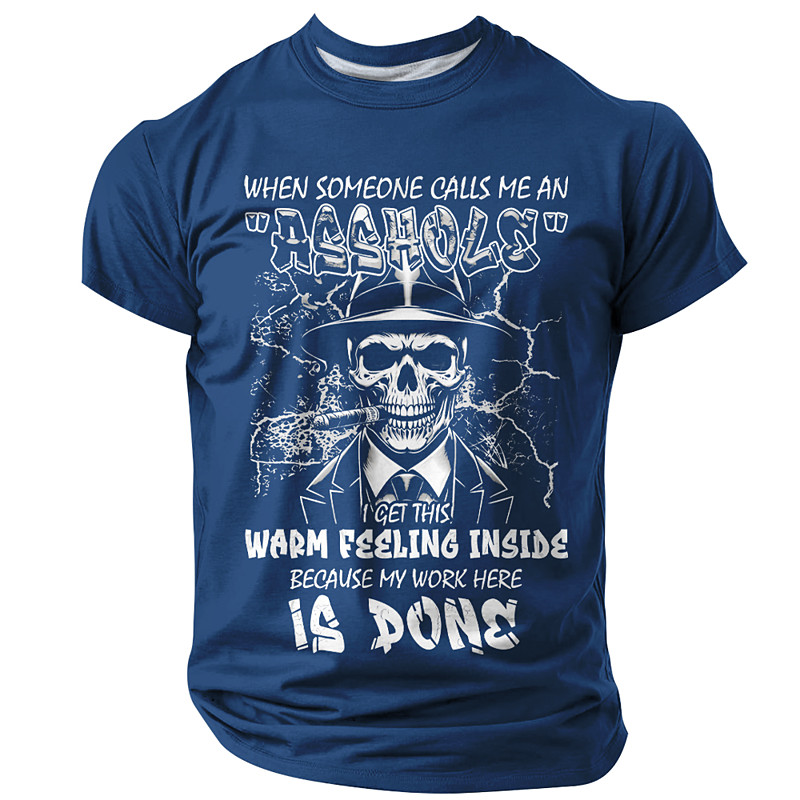 Men's Funny Graphic T-Shirt with Skull Cigar, Asshole Work Humor Sarcastic Quote