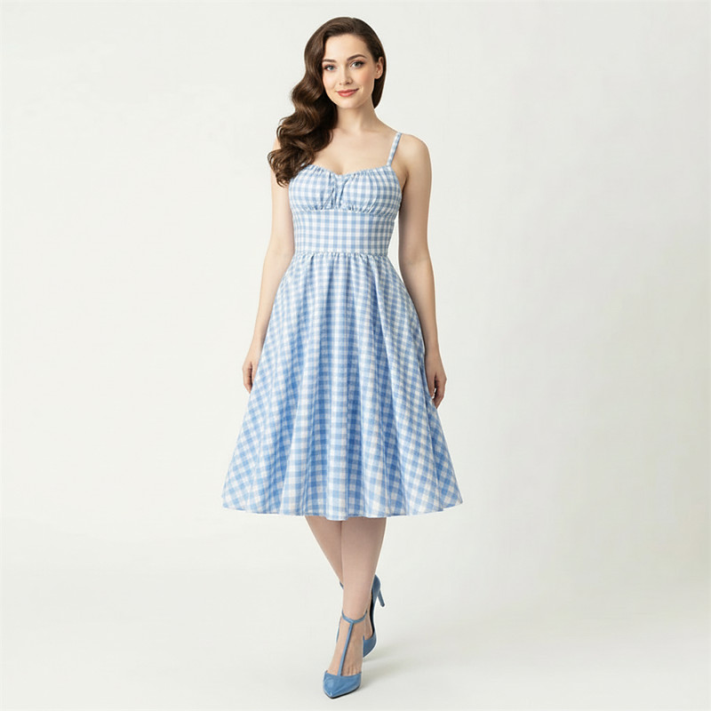 Retro Vintage 1950s Hepburn Midi Dress A Line Dress Flare Dress Spaghetti Straps Plaid Fit Flare Fancy Dress Women's Carnival Valentine's Day Casual Homecoming Retro Theme Party Adults' Dress