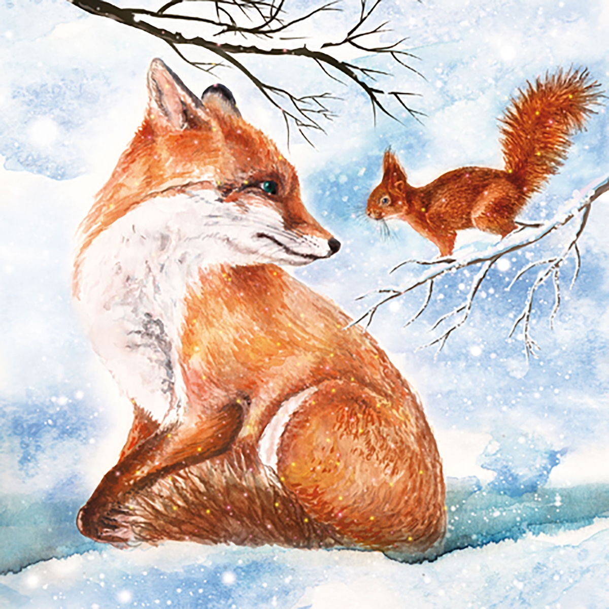 ti-flair 20 Servietten Papier 33x33cm 3-lagig - hochwertige Einweg Papierservietten Weihnachtsservietten Fuchs und Eichhörnchen Motivservietten Winter