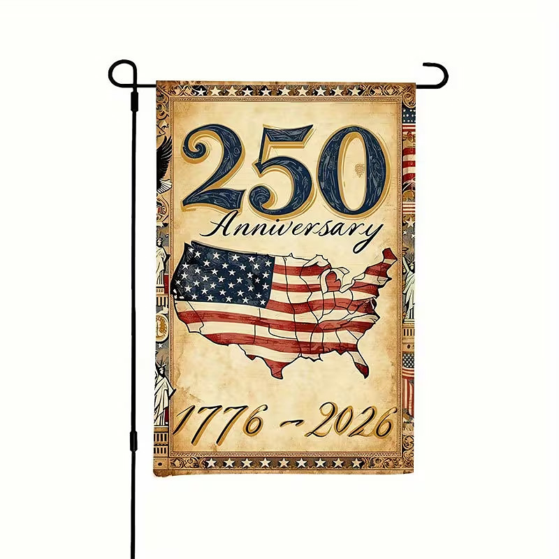 250th Anniversary Garden Flag Vintage-Style USA Map with American Flag Design Commemorative 1776-2026 Yard Decoration for Patriotic Celebrations