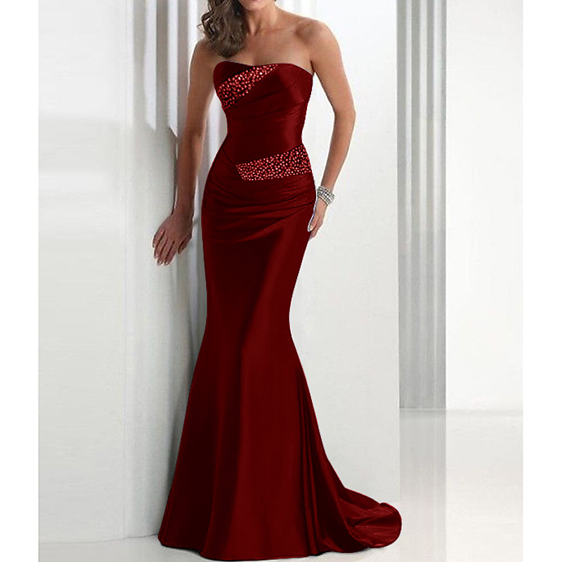 Mermaid Trumpet Sweep Brush Train Prom Dresses Evening Gown Ball Gown Formal Dress Elegant Sparkle Shine Sleeveless Strapless Wedding Guest Formal Evening Satin with Crystals