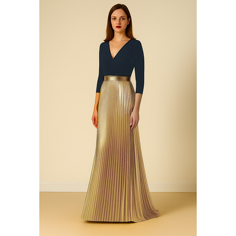 A-Line Floor Length Prom Dresses Evening Gown Ball Gown Formal Dress Elegant Glittering Celebrity Style 3/4 Length Sleeve V Neck Garden Party Wedding Stretch Crepe with Pleats