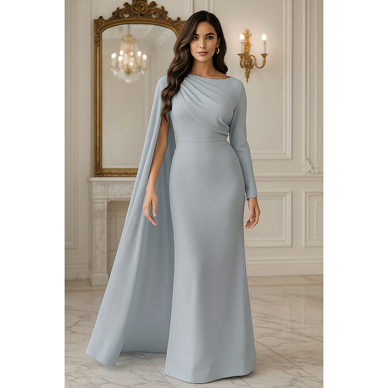 Sheath Column Floor Length Prom Dresses Evening Gown Ball Gown Formal Dress Elegant Long Sleeve Crew Neck Wedding Formal Stretch Crepe with Shawl