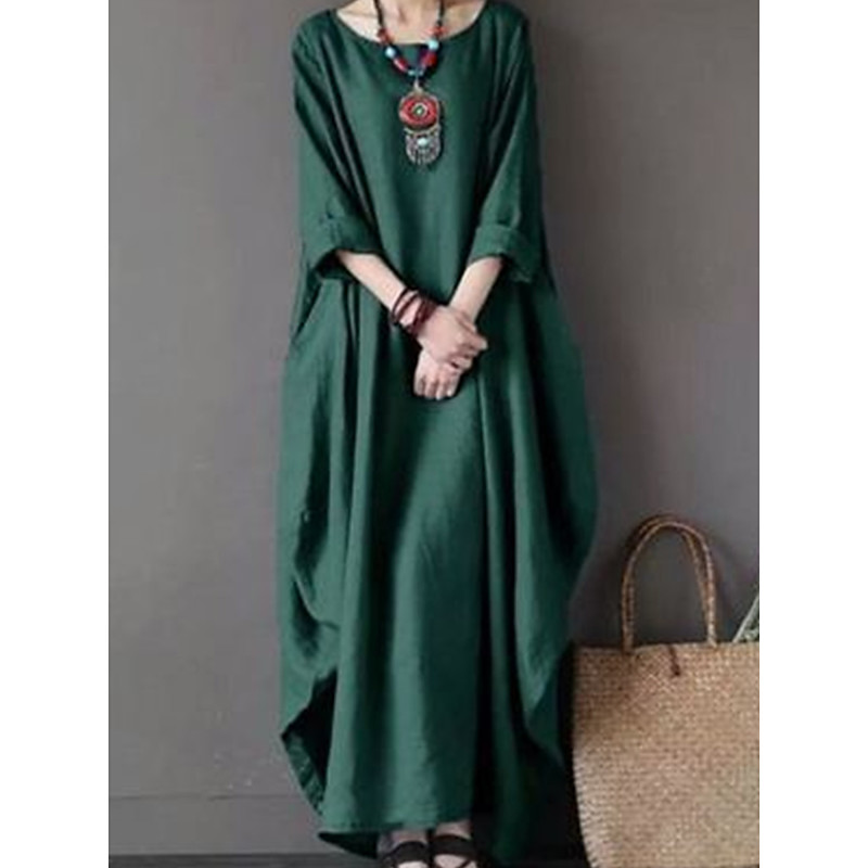 Women's Long Dress Maxi Dress Cotton Blend White Dress Casual Dress Winter Dress Streetwear Vacation Street Loose Fit Long Sleeve Crew Neck Blue Black White Red Fall Winter