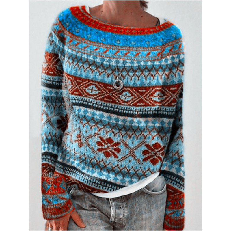 Women's Sweater Casual Soft Geometric Ribbed Crew Neck Knitted Long Sleeve Regular Tops Knit Outdoor Daily Weekend Blue Dark Green Fall Winter