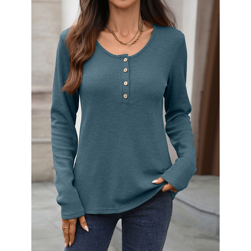 Women's T Shirt Plain Fashion Stylish Classic Long Sleeve Crew Neck Regular Tops Daily Weekend Buttons Blue Black Purple Beige Summer Spring Fall