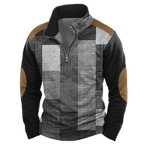 Per uomo Geometrico Plaid Felpa Casual Manica Lunga Collo Alto Vacanza Abbigliamento casual alla moda Rosso Blu Verde Grigio Cerniera Zip a un quarto Autunno Inverno progettista S M L XL XXL 3XL