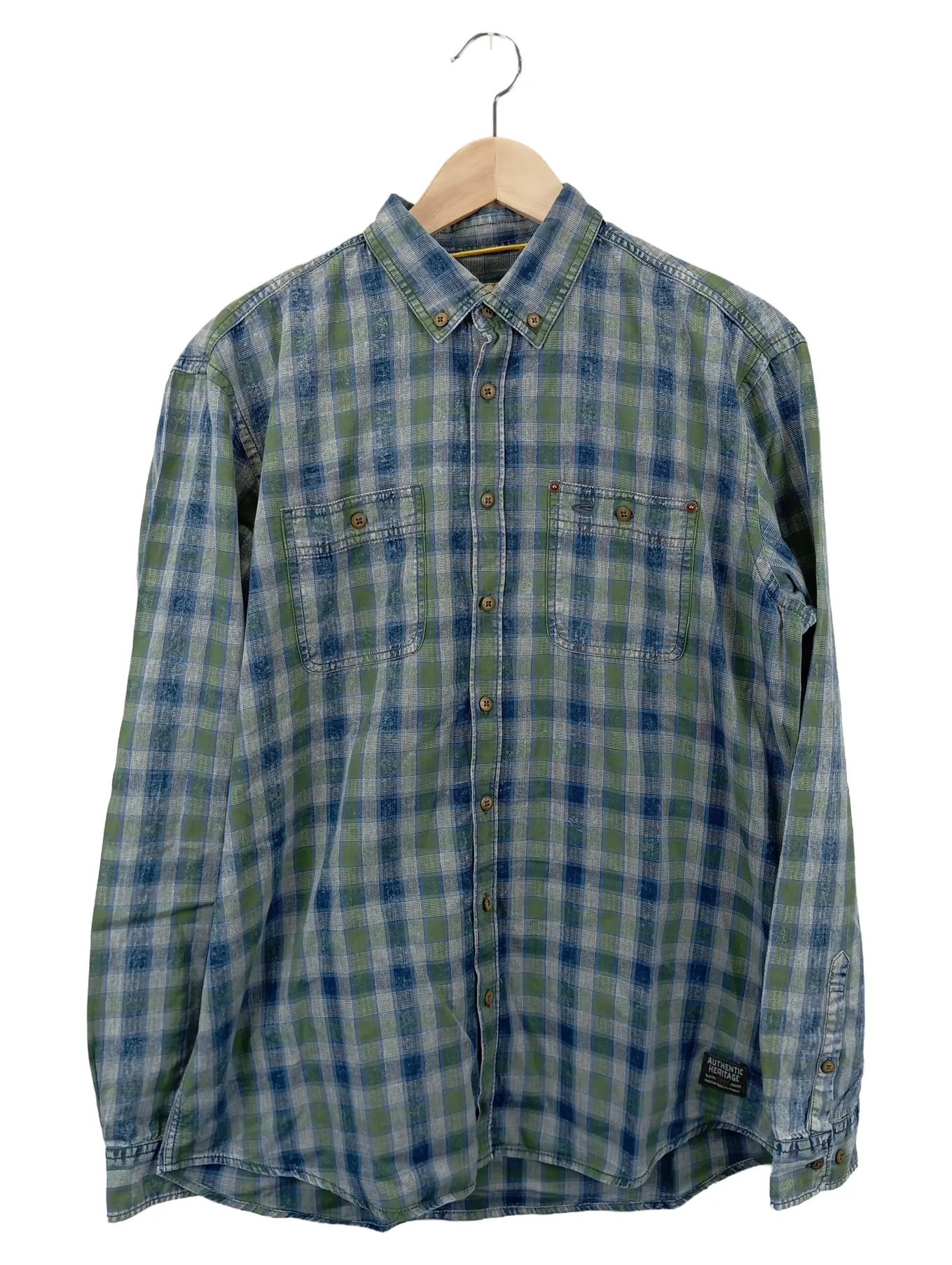 CAMEL ACTIVE Herrenhemd L Karo Grün/Blau Langarm Freizeit