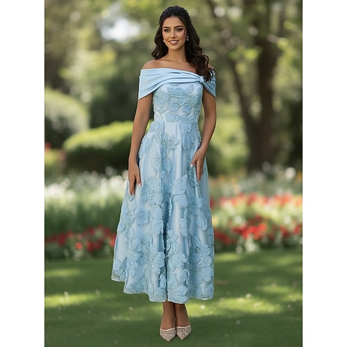 Linea ad A Lunghezza Tè Abiti da Cocktail Abito da Sera Abiti da festa Elegante Scintillante Stile Celebrità Senza Maniche Senza Spalle Festa in giardino Matrimonio Pizzo Raso Elasticizzato con
