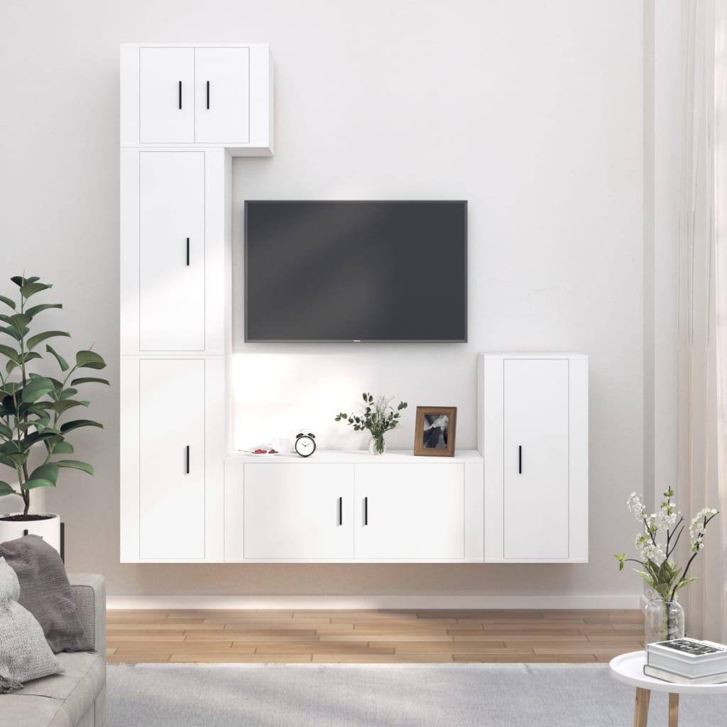 Tv-skabssæt 5 dele konstrueret træ hvid