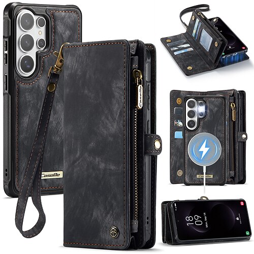 telefono Custodia Per Samsung Galaxy S26 S26 Ultra Plus Custodia Portafoglio con Supporto Rimovibile Supporta la Ricarica Wireless Retrò TPU Pelle PU