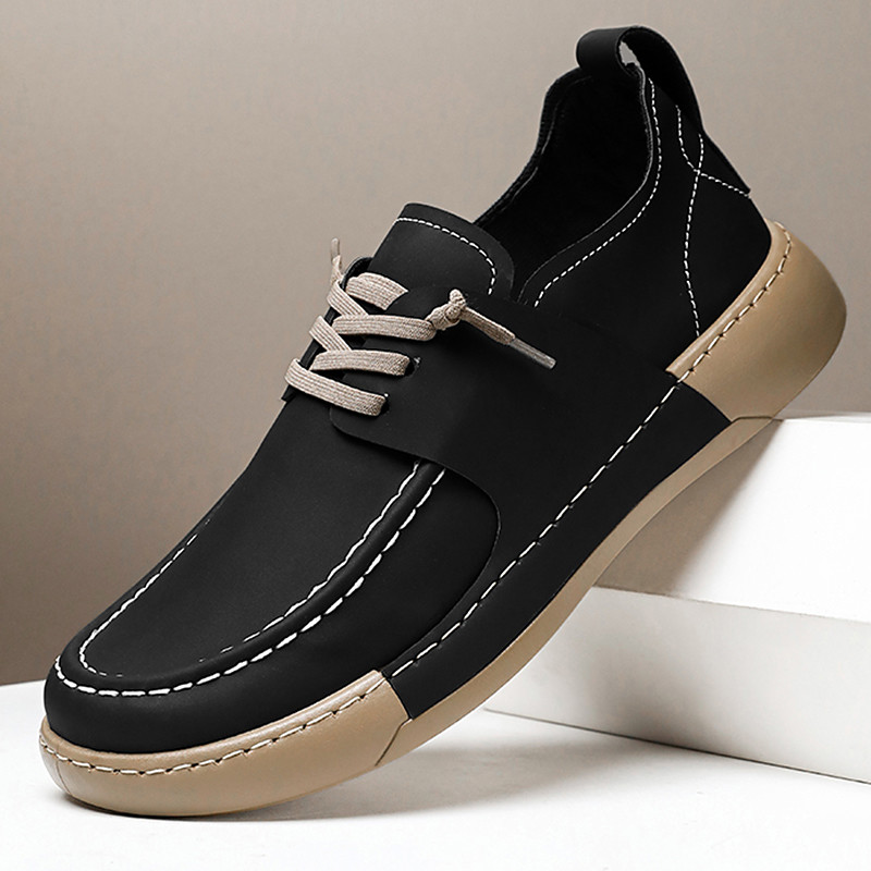 Men's Casual Faux Leather Lace-Up Shoes - Lightweight and Comfortable Moccasin Style for Walking, Travel and Everyday Wear