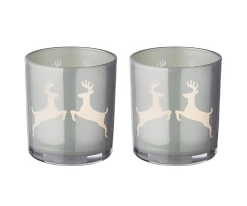 EDZARD 2er-Set Teelichtglas Loki (Höhe 8 cm, ø 7,5 cm) in Grau, Windlicht mit Hirsch-Motiv