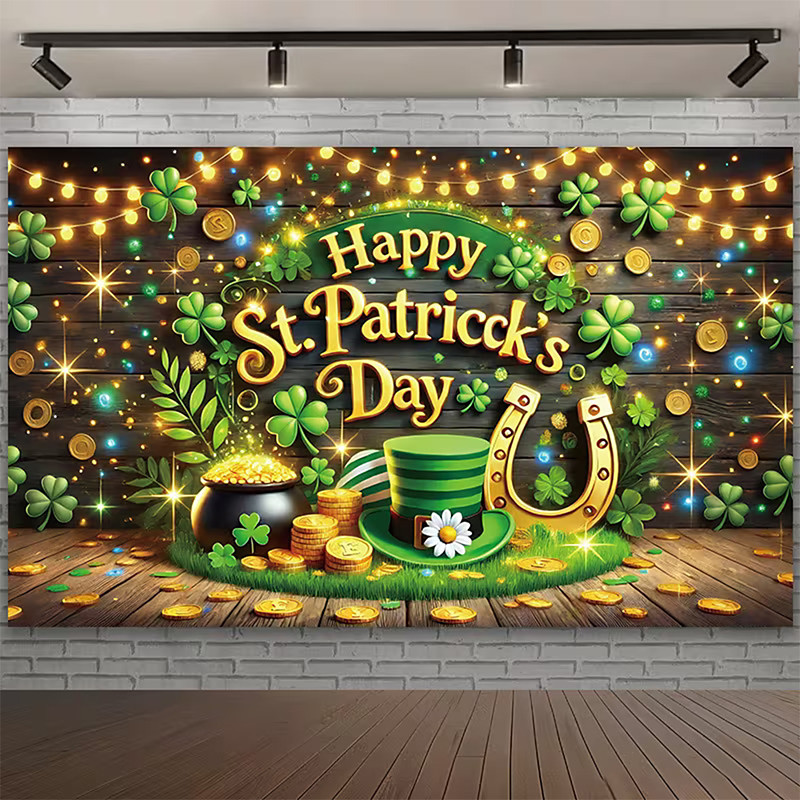 St. Patrick's Day Tapestry Banners Blanket Gold coin Green Hat Shamrock Cute Romantic 3D Bedroom Living Room Dorm Teens Room College Dorm Wall Porch Home Decor