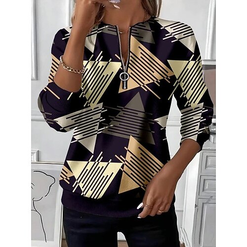 Per donna Pullover Felpe Geometrico Moda Streetwear Classico Manica Lunga Girocollo Top Regolari Abbigliamento Quotidiano Casuale Stampato Blu marino Viola Verde Primavera Autunno