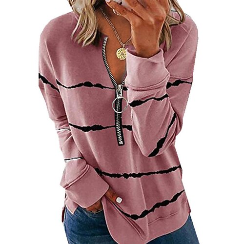 Per donna Felpa Pullover Felpe con cerniera Grafico Geometrico Astratto Moda Casual Manica Lunga Girocollo Top Regolari Streetwear Abbigliamento Quotidiano Cerniera Stampato Giallo Verde chiaro Rosa