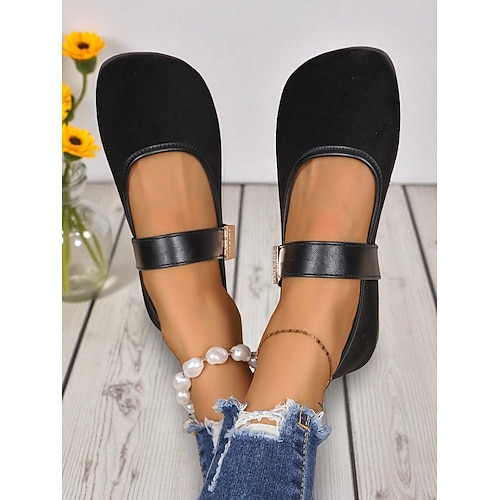 scarpe basse larghe da donna in stile mary jane marroni – scarpe a piedi nudi in pelle scamosciata marrone con punta tonda e fibbia, comode calzature basse retrò per l'ufficio e gli outfit casual