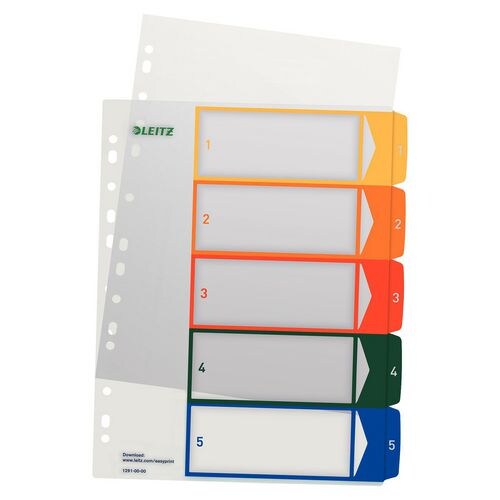 Leitz PC-beschriftbares Register 1291 DIN A4 Maxi Mehrfarbig 5-teilig 11 Löcher Polypropylen 1 bis 5