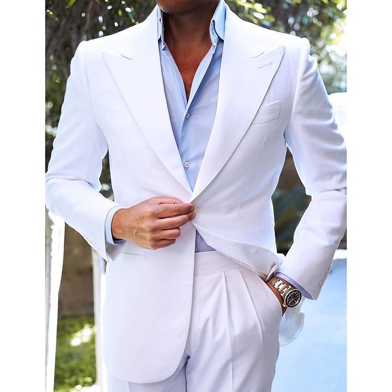 Men's Wedding Party Suits Peak White Yellow Fashion Business Solid Colored Tailored Fit 2 Piece Single Breasted One-button