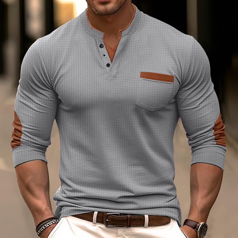 Men's Waffle Tee Waffle Henley Shirt Shirts With Elbow Patches Long Sleeve Solid Color Fashion Basic Casual Fake two piece V Neck Casual Street Sports Spring Fall All Seasons Black Navy Blue Army