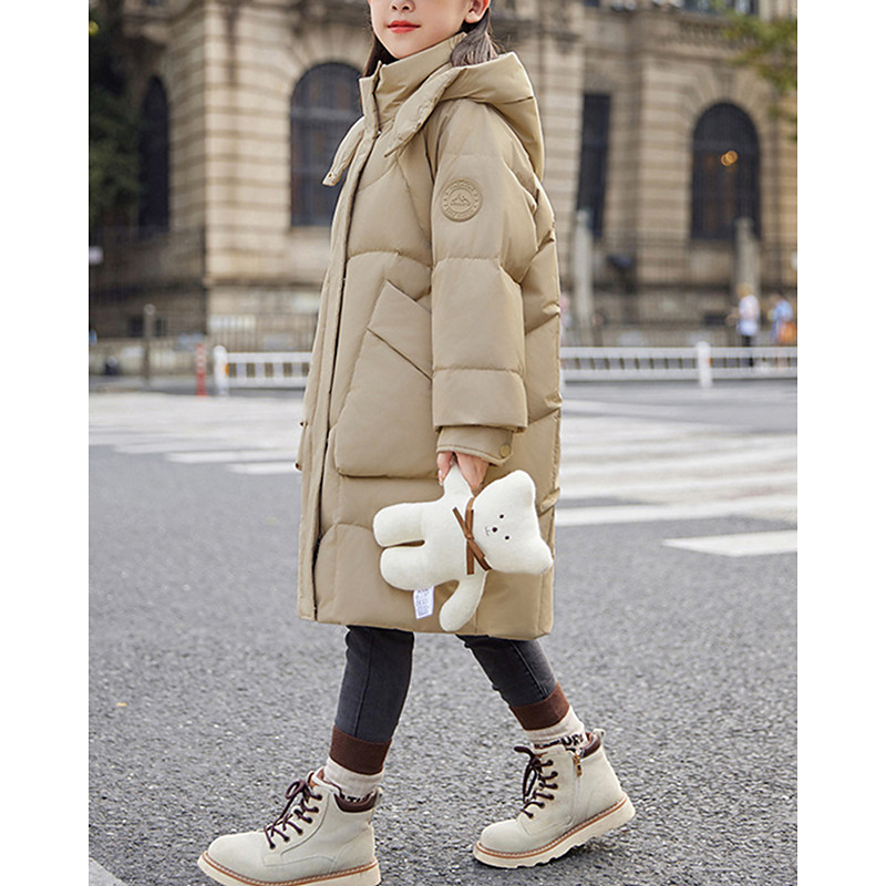 Kids Girls' Down Jacket Puffer Jacket Solid Color Sports Pocket Keep Warm Windproof Outdoor Coat Outerwear 4-12 Years Winter Black Pink Red