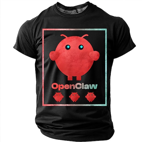 Herren-T-Shirt mit Maskottchen-Roboter-Openclaw-KI-Hummer-Tech-Geek-Programmierer-KI-Agent-Motiv, Grafik, normale Passform, Kurzarm, Rundhalsausschnitt, Freizeitkleidung, Designer-Bekleidung, Größen: