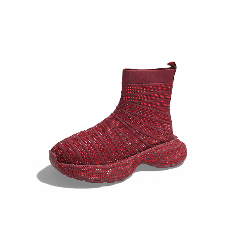 Women's Black Rhinestone Ankle Boots, Chunky Stretch Fit Nightlife Party Shoes