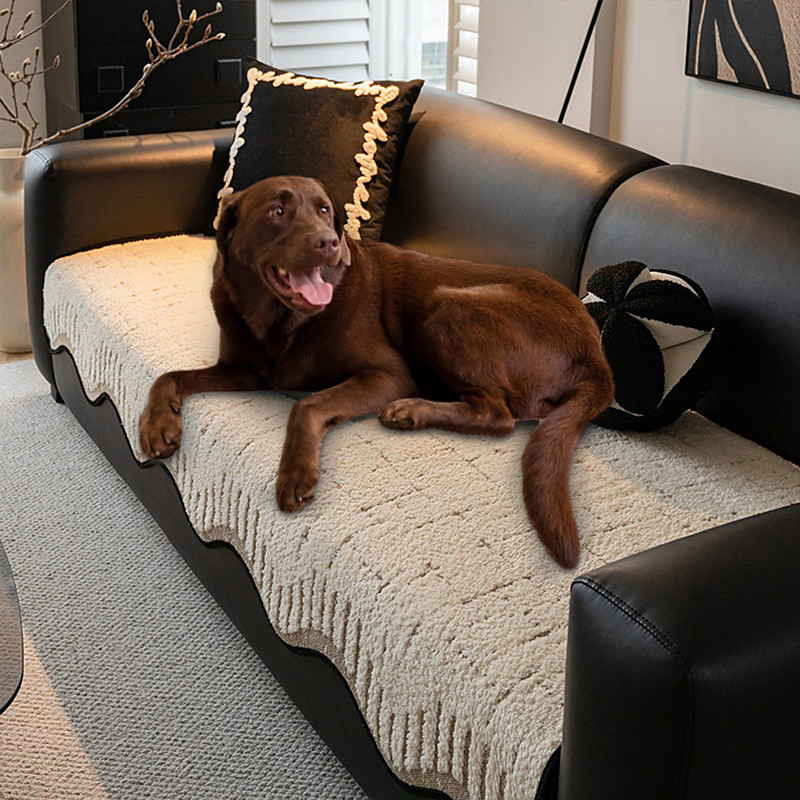 Sofa Cover For Dog Soft Thickened Plush Couch Cover with Irregular Wave Edges Pet Friendly