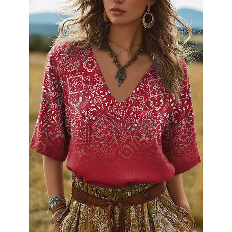 Women's T Shirt Floral Graphic Plants Vintage Stylish Classic Short Sleeve V Neck Regular Tops Daily Weekend Vacation Wear Print White Pink Red Royal Blue Summer Spring
