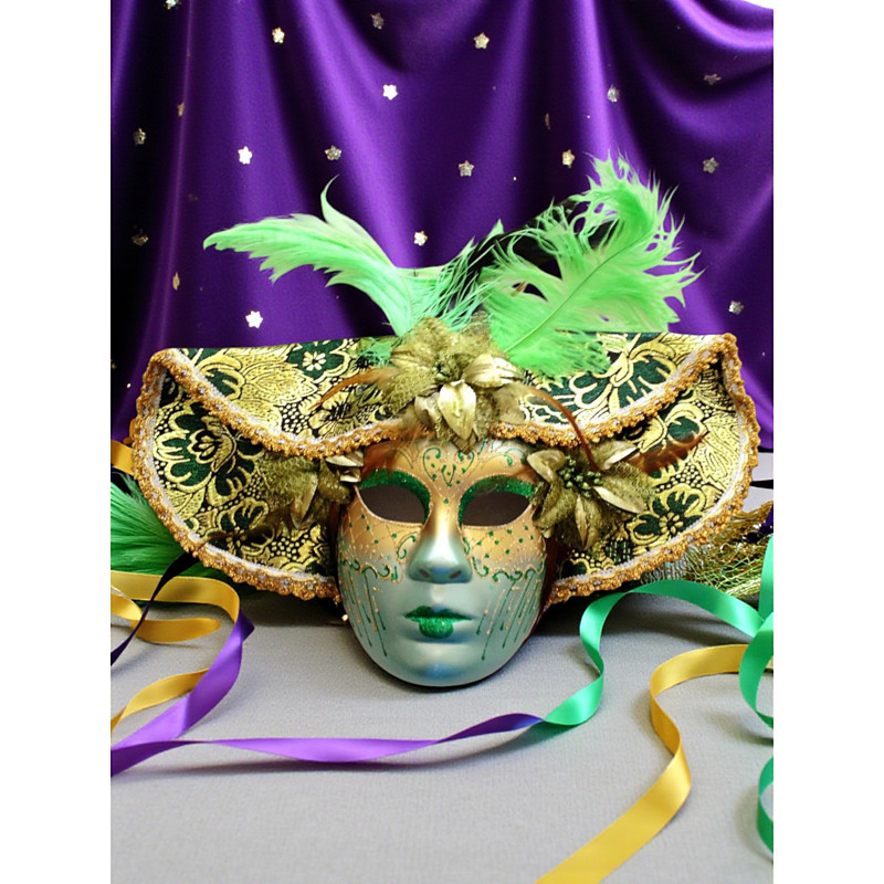 Women's Red and Gold Venetian Carnival Mask with Feathers and Floral Details – Perfect for Mardi Gras and Masquerade Parties