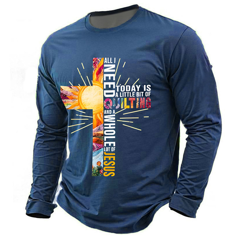 Men's Jesus Faith Christian T Shirt Long Sleeve T shirt 3D Print Crew Neck Shirt Fashion Daily Basic Street Casual Daily Black Red Blue Summer Spring Clothing Apparel S M L XL XXL XXXL