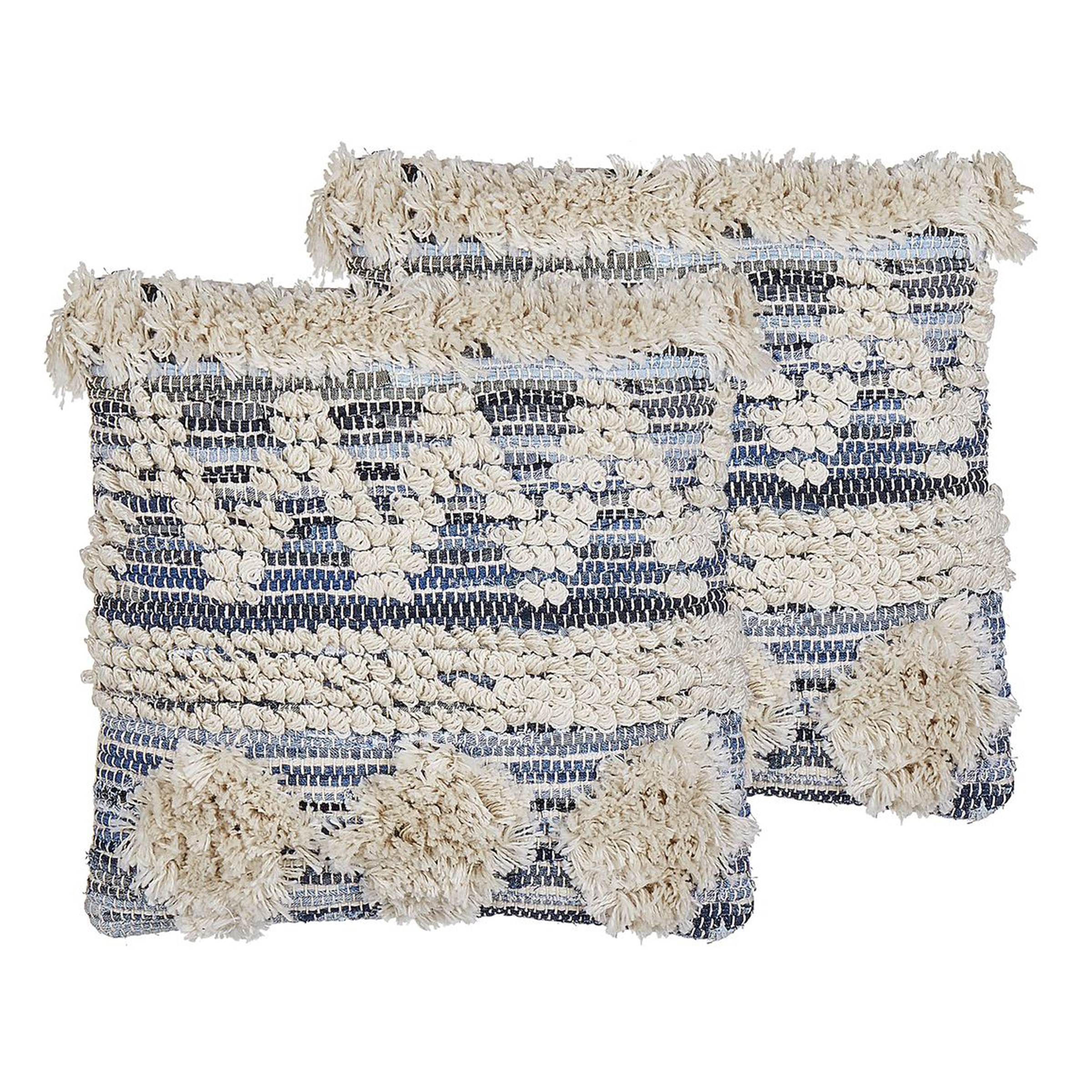 Koristetyynysetti 2 kpl EYTELIA buklee 45 x 45 cm Sininen Geometrinen kuvio