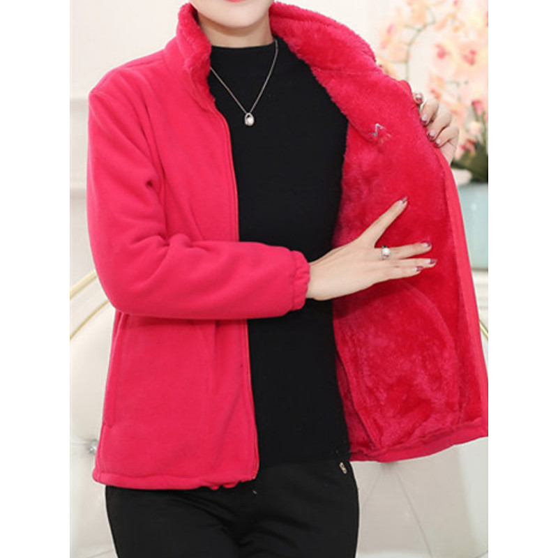 Women's Sherpa Jacket Comfortable Breathable Zipper Pocket Casual Plain Vacation Street Casual Daily Wear Zipper Regular Stand Collar Loose Fit Long Sleeve Outerwear Deep Purple Black Pink Spring Fall