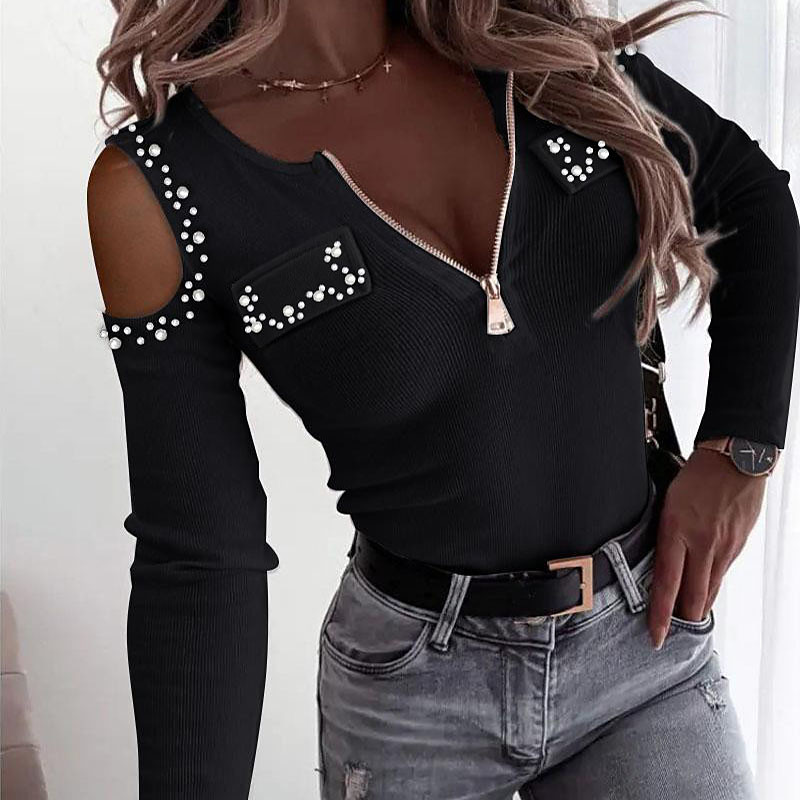 Women's Blouse Plain Vintage Stylish Long Sleeve V Neck Regular Tops Daily Holiday Going out Patchwork Zipper Black Khaki Fall Winter