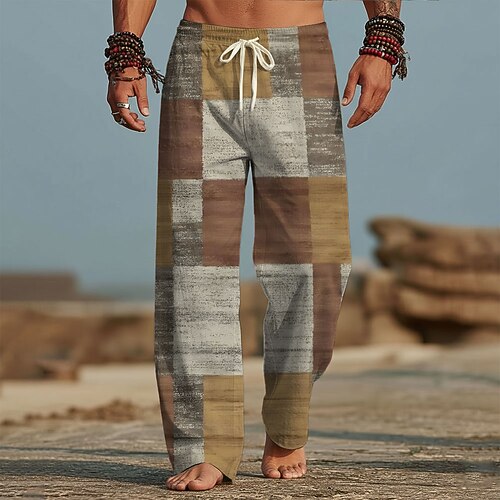 Per uomo Pantaloni Pantaloni Larghi Pantaloni casual Coulisse elastica in vita Pantaloni tipo lino con tasche Pittura a inchiostro Lunghezza intera Vacanza Abbigliamento casual alla moda Stile
